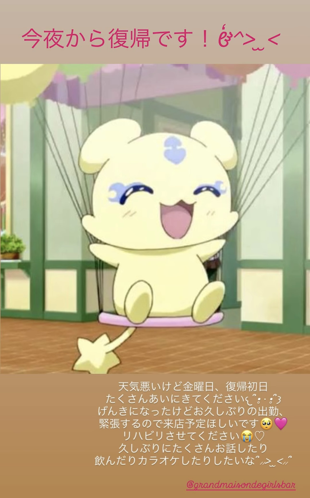 お久しぶりです!体調不良で4.5日お休みしていましたすみません😭今夜から復帰です!